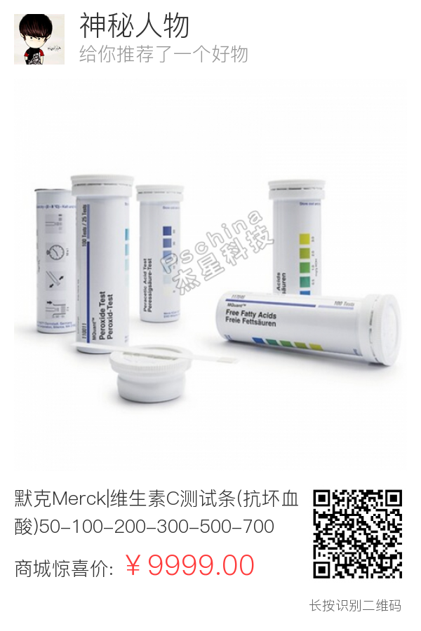 默克Merck|维生素C测试条(抗坏血酸)50-100-200-300-500-700-1000-2000mg/l|100条|1.10023.0001|ME1100230001
