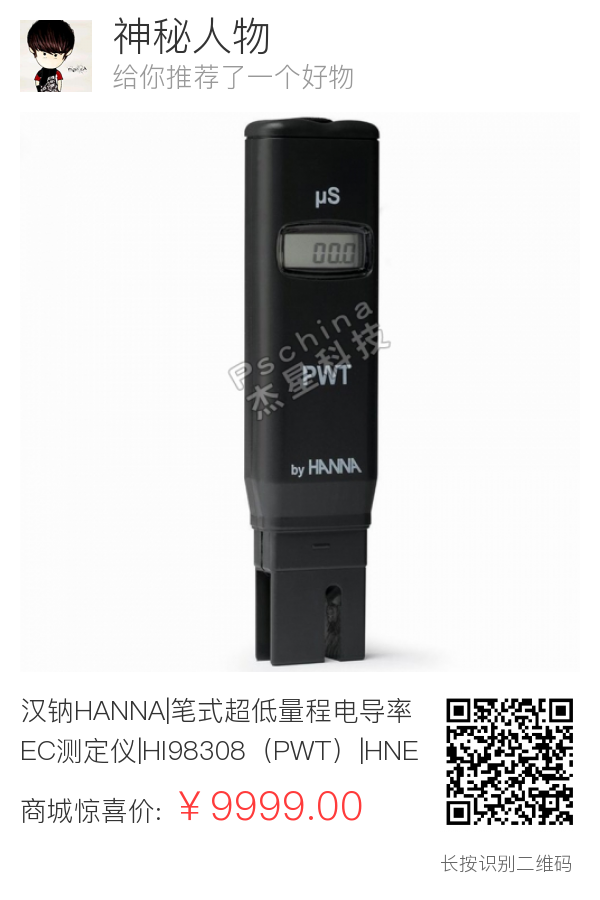 汉钠HANNA|笔式超低量程电导率EC测定仪|HI98308(PWT)|HNE000009|HNE000009