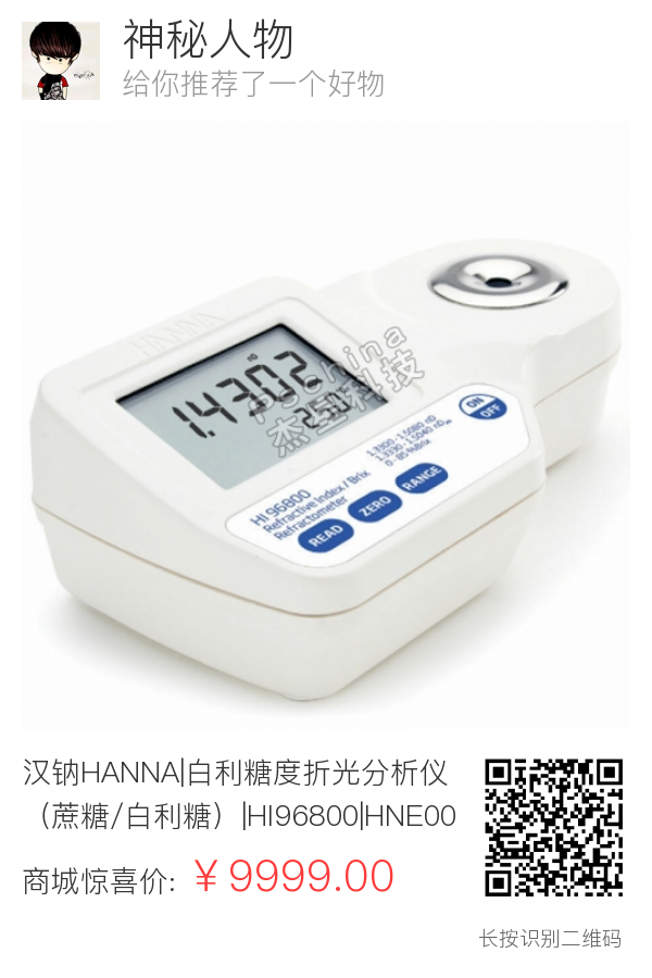 汉钠HANNA|白利糖度折光分析仪(蔗糖/白利糖)|HI96800|HNE000050|HNE000050