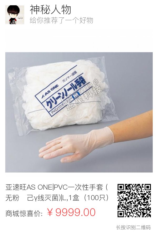 亚速旺AS ONE|PVC一次性手套 (无粉・己γ线灭菌)|L,1盒(100只)|6-931-02|ASA6-931-02