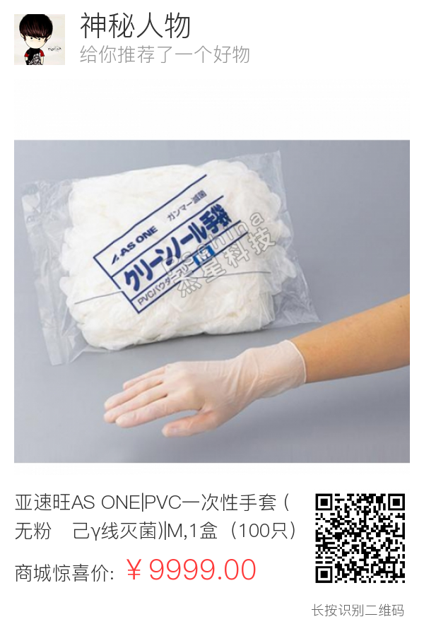 亚速旺AS ONE|PVC一次性手套 (无粉・己γ线灭菌)|M,1盒(100只)|6-931-03|ASA6-931-03