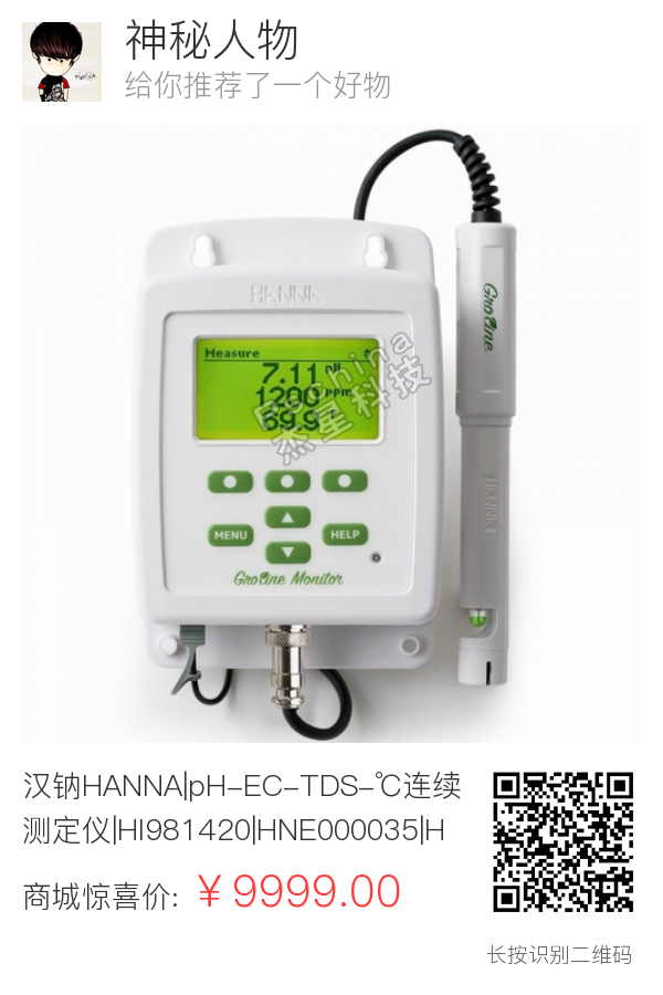 汉钠HANNA|pH-EC-TDS-℃连续测定仪|HI981420|HNE000035|HNE000035