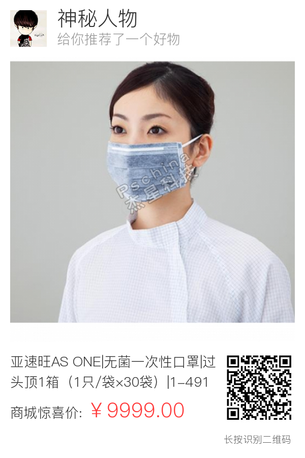 亚速旺AS ONE|无菌一次性口罩|过头顶1箱(1只/袋×30袋)|1-491-02|ASA1-491-02