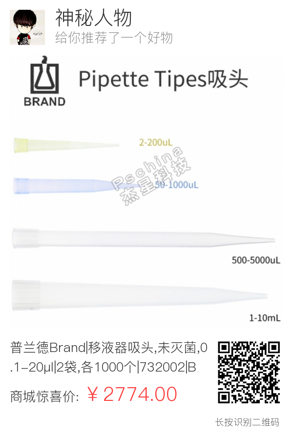 普兰德Brand|移液器吸头,未灭菌,0.1-20µl|2袋,各1000个|732002|BR732002