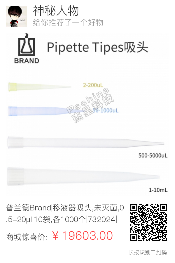 普兰德Brand|移液器吸头,未灭菌,0.5-20µl|10袋,各1000个|732024|BR732024