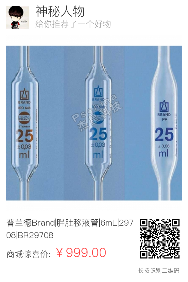 普兰德Brand|胖肚移液管|6mL|29708|BR29708