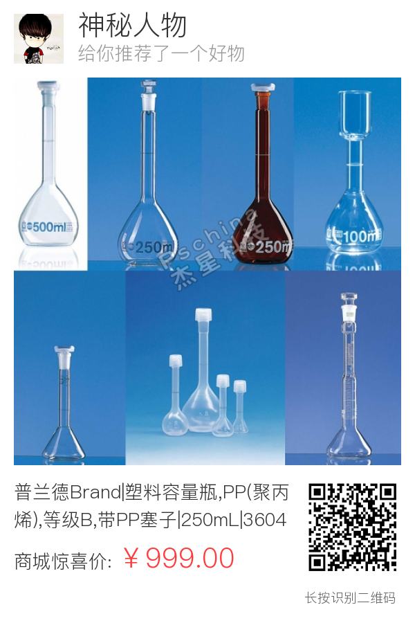 普兰德Brand|塑料容量瓶,PP(聚丙烯),等级B,带PP塞子|250mL|36048|BR36048