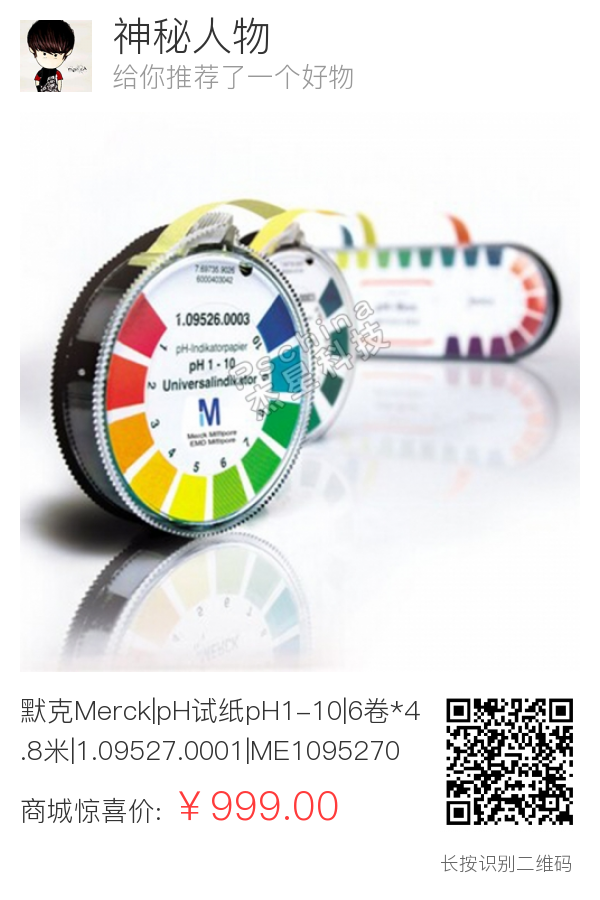 默克Merck|pH试纸pH1-10|6卷*4.8米|1.09527.0001|ME1095270001