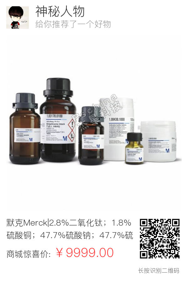 默克Merck|2.8%二氧化钛;1.8%硫酸铜;47.7%硫酸钠;47.7%硫酸钾|3.5g /片(250片)|1.18348.0250|ME1183480250|
