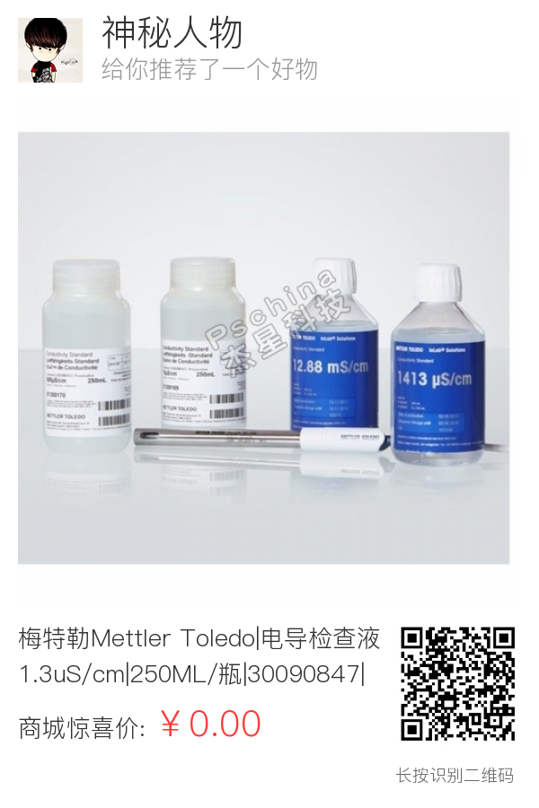 梅特勒Mettler Toledo|电导检查液1.3uS/cm|250ML/瓶|30090847|MTC30090847|