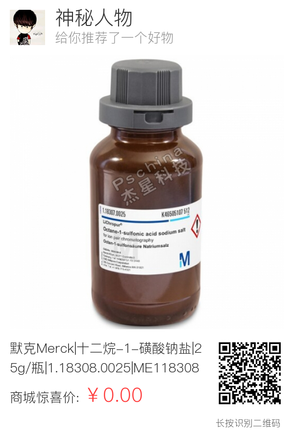 默克Merck|十二烷-1-磺酸钠盐|25g/瓶|1.18308.0025|ME1183080025|2386-53-0