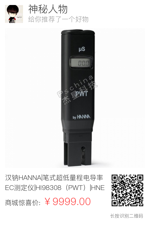 汉钠HANNA|笔式超低量程电导率EC测定仪|HI98308(PWT)|HNE000009|HNE000009