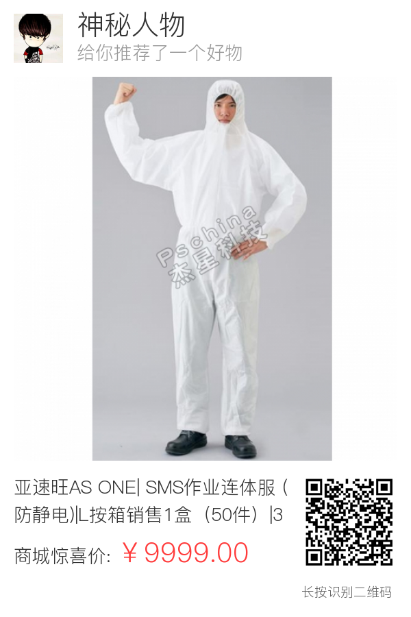 亚速旺AS ONE| SMS作业连体服 (防静电)|L按箱销售1盒(50件)|3-1781-52|ASA3-1781-52
