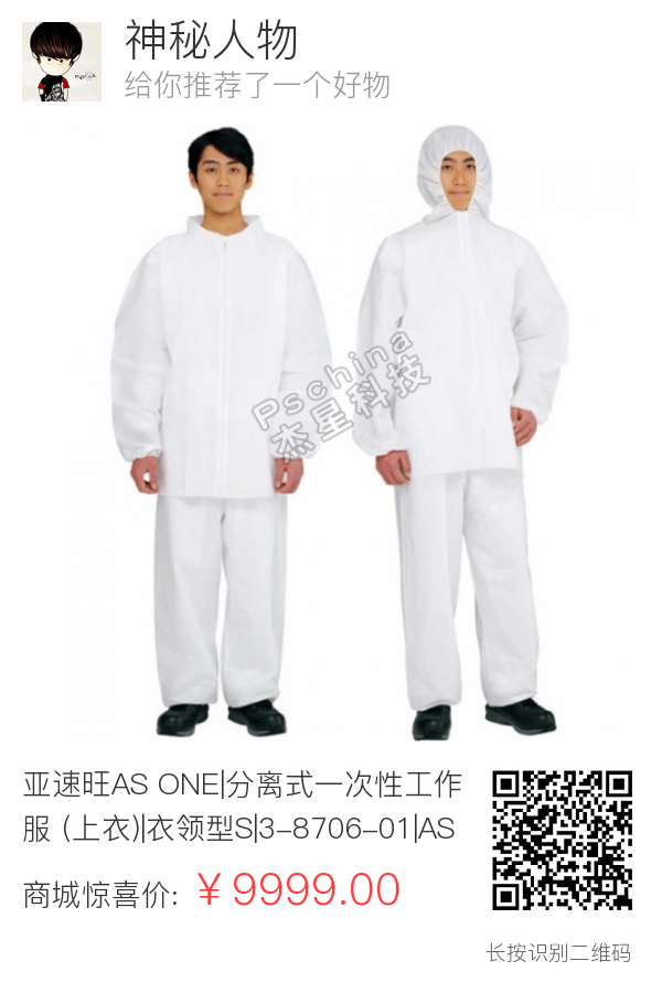 亚速旺AS ONE|分离式一次性工作服 (上衣)|衣领型S|3-8706-01|ASA3-8706-01