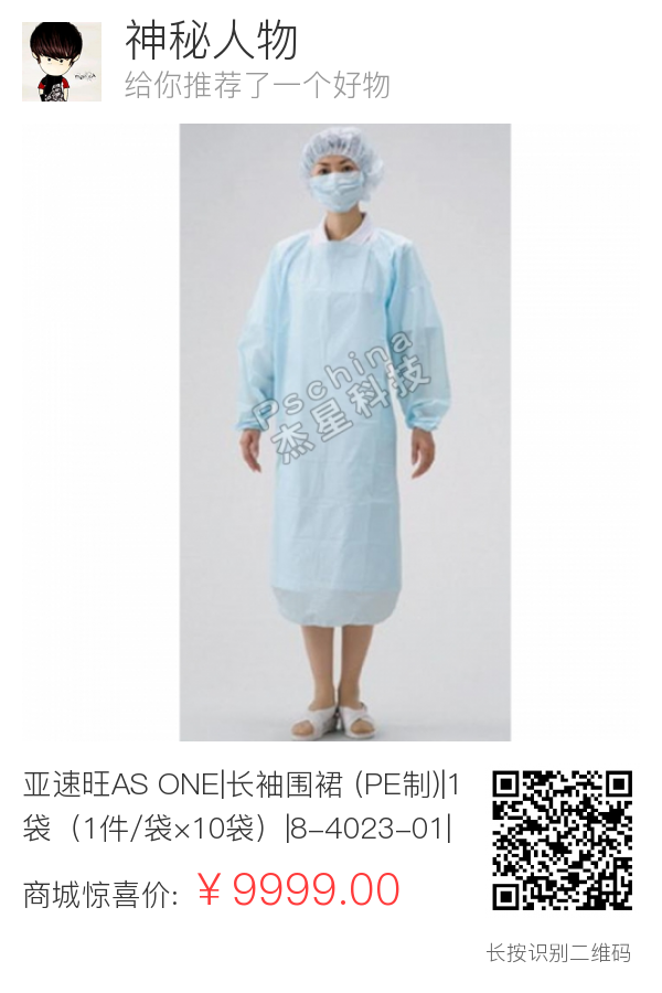 亚速旺AS ONE|长袖围裙 (PE制)|1袋(1件/袋×10袋)|8-4023-01|ASA8-4023-01