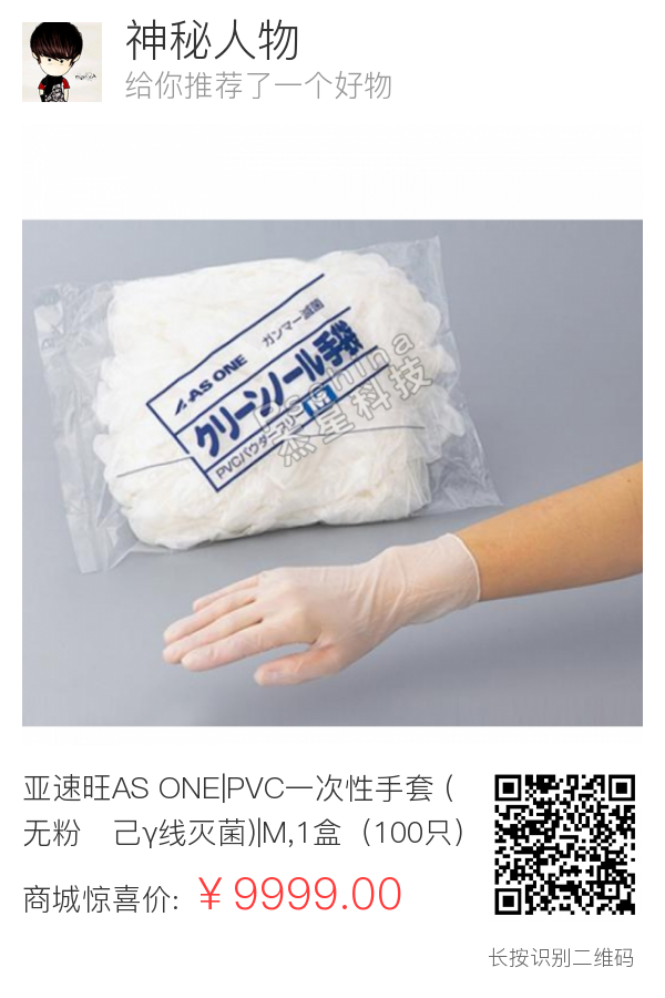 亚速旺AS ONE|PVC一次性手套 (无粉・己γ线灭菌)|M,1盒(100只)|6-931-03|ASA6-931-03