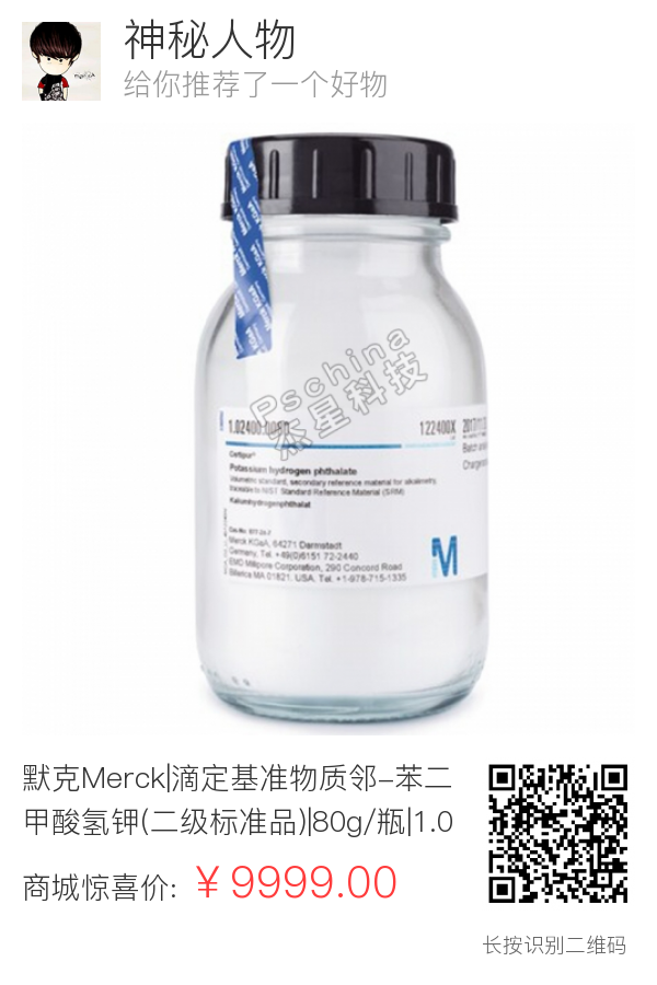 默克Merck|滴定基准物质邻-苯二甲酸氢钾(二级标准品)|80g/瓶|1.02400.0080|ME1024000080|877-24-7