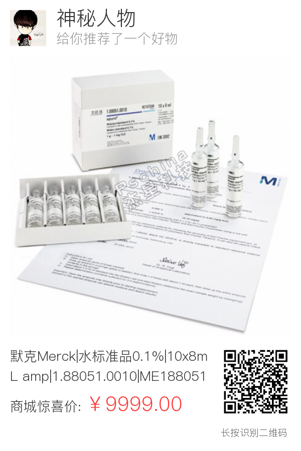 默克Merck|水标准品0.1%|10x8mL amp|1.88051.0010|ME1880510010|1589-47-5,107-98-2