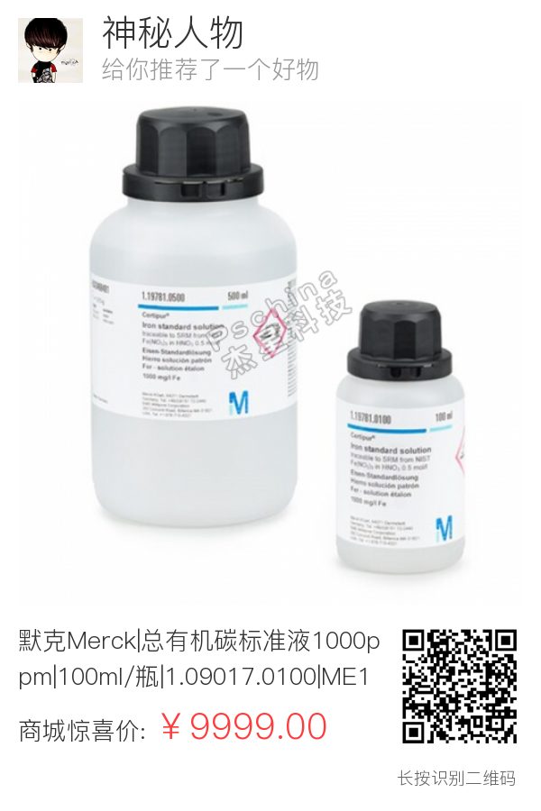 默克Merck|总有机碳标准液1000ppm|100ml/瓶|1.09017.0100|ME1090170100|
