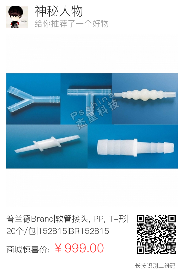 普兰德Brand|软管接头, PP, T-形|20个/包|152815|BR152815
