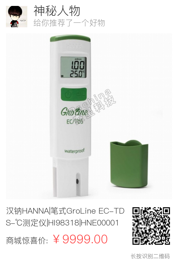 汉钠HANNA|笔式GroLine EC-TDS-℃测定仪|HI98318|HNE000013|HNE000013