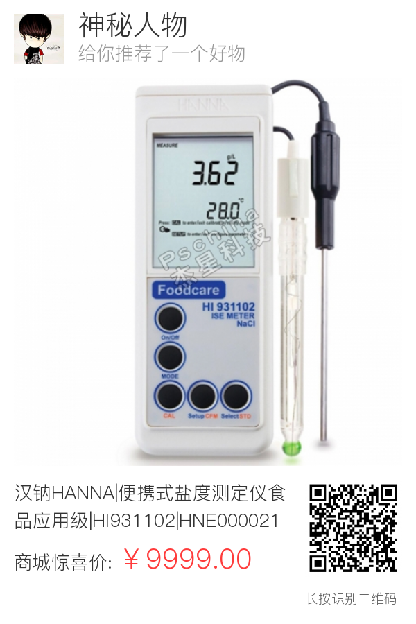 汉钠HANNA|便携式盐度测定仪食品应用级|HI931102|HNE000021 |HNE000021