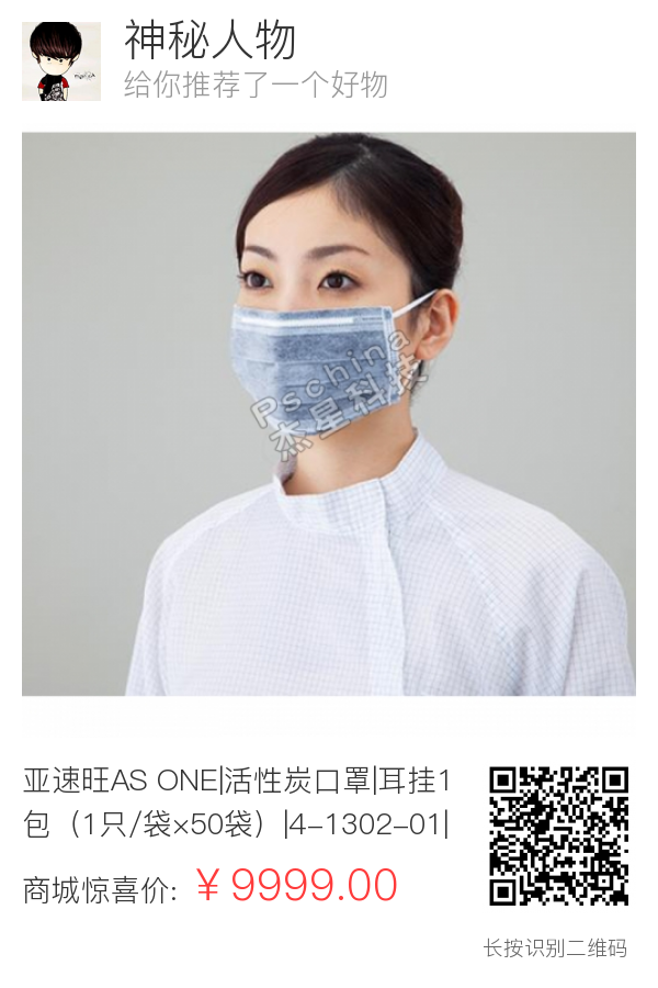 亚速旺AS ONE|活性炭口罩|耳挂1包(1只/袋×50袋)|4-1302-01|ASA4-1302-01