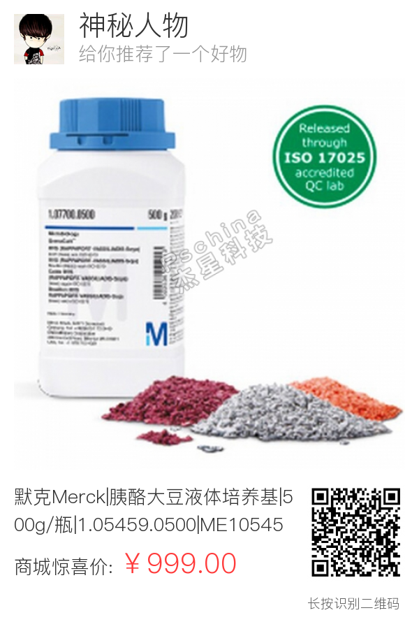 默克Merck|胰酪大豆液体培养基|500g/瓶|1.05459.0500|ME1054590500