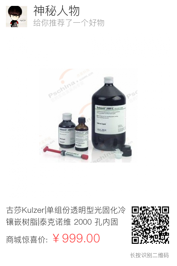 古莎Kulzer|单组份透明型光固化冷镶嵌树脂|泰克诺维 2000 孔内固化剂(40ml/瓶 )|KLC000044|KLC000044|