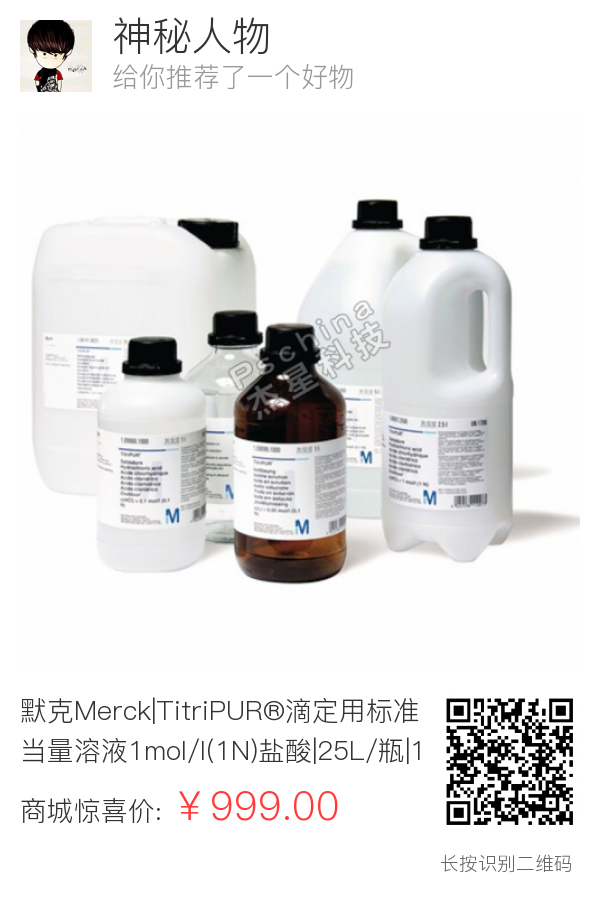默克Merck|TitriPUR®滴定用标准当量溶液1mol/l(1N)盐酸|25L/瓶|1.09970.9025|ME1099709025|7647-01-0