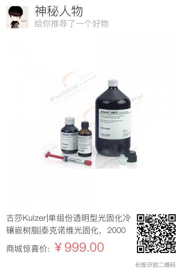 古莎Kulzer|单组份透明型光固化冷镶嵌树脂|泰克诺维光固化,2000LC液体(1L/瓶)|KLC000041|KLC000041|