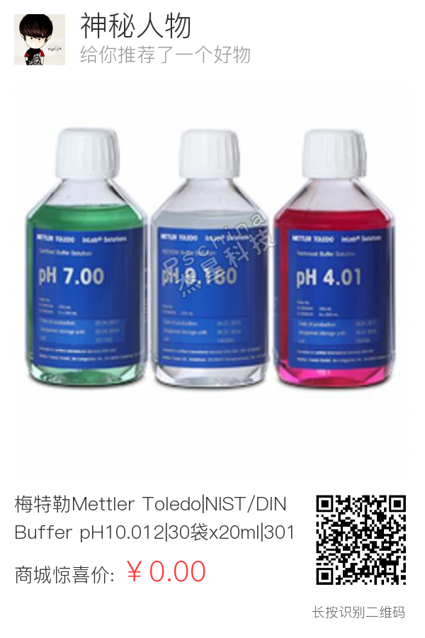 梅特勒Mettler Toledo|NIST/DIN Buffer pH10.012|30袋x20ml|30111139|MTC30111139|