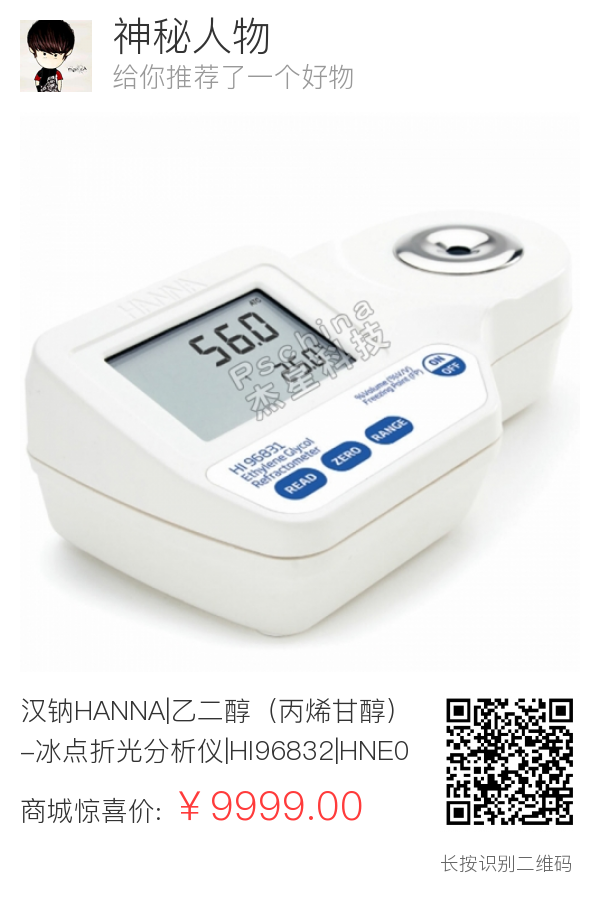 汉钠HANNA|乙二醇(丙烯甘醇)-冰点折光分析仪|HI96832|HNE000063|HNE000063