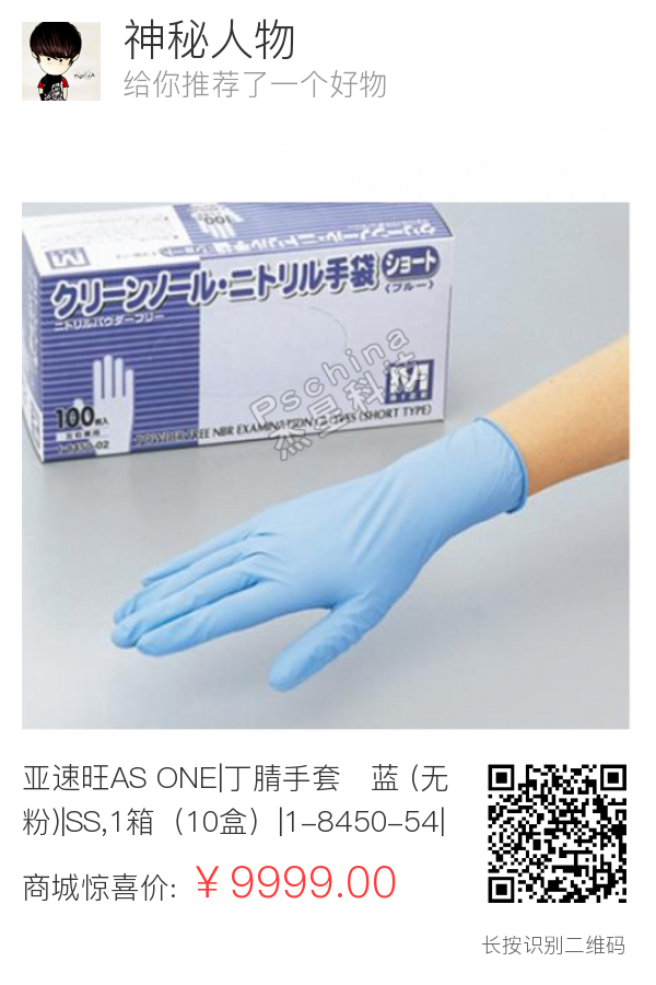 亚速旺AS ONE|丁腈手套・蓝 (无粉)|SS,1箱(10盒)|1-8450-54|ASA1-8450-54