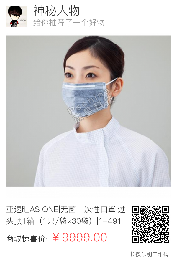 亚速旺AS ONE|无菌一次性口罩|过头顶1箱(1只/袋×30袋)|1-491-02|ASA1-491-02
